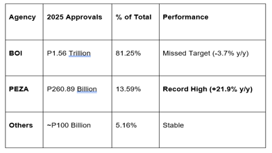 While the Board of Investments (BOI) remained the heavy lifter, the Philippine Economic Zone Authority (PEZA) stole the spotlight with a record-breaking performance.